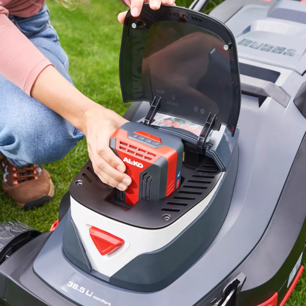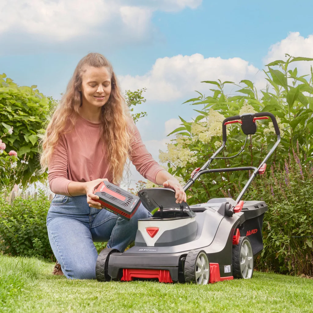 Kényelem és stílusos dizájn ötvöződik az AL-KO 36V akkus fűnyíróban, a 38.5 Li Comfortban